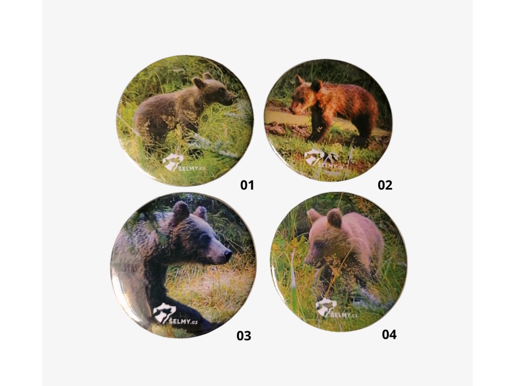 Kovové, o průměru 37 mm, se spínacím špendlíkem. Grafika je krytá lesklou fólií pro ochranu a efektnější vzhled. Můžete si vybrat z několika motivů.